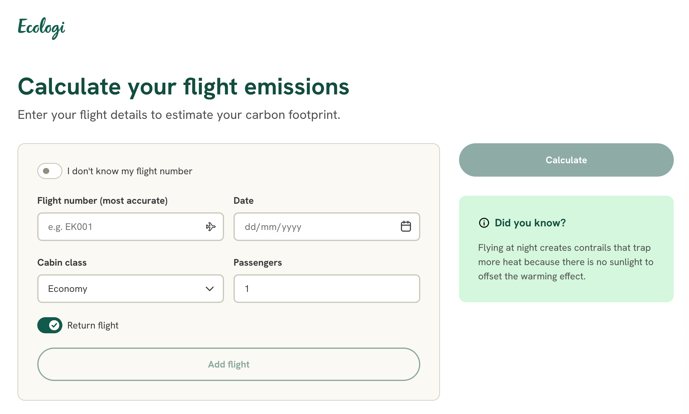 Flight emissions calculator