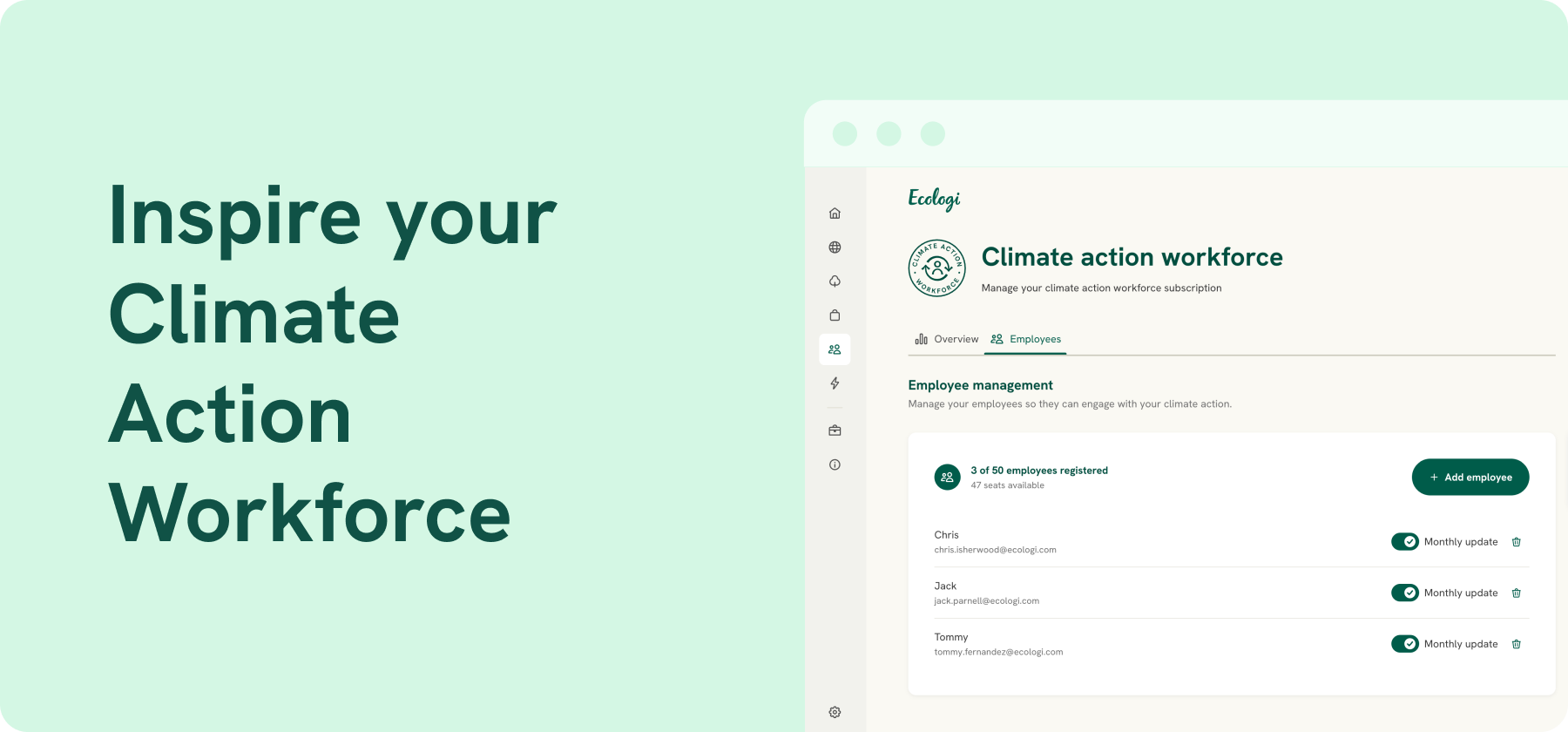 You can now, for the first time, add your employee emails to your Climate Action Workforce subscription, allowing you to optionally send them your monthly impact summary every time your subscription renews.