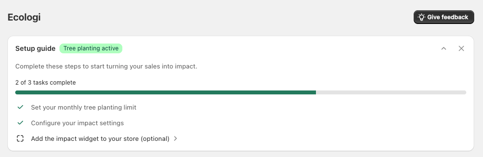 We've made it easier for you to get started using the Ecologi app. We've made the onboarding steps skippable if you want to come back to them later. We've also added a 3 step checklist to guide you through the steps you need to make to start tree planting.
